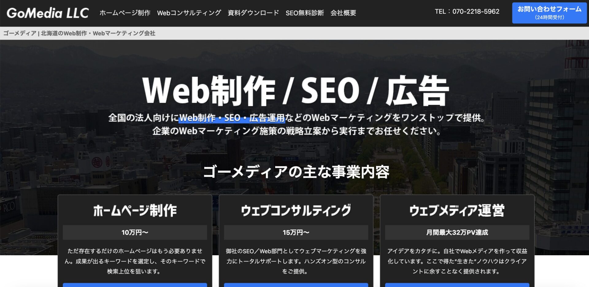 ゴーメディア合同会社は、札幌市を拠点とし、地域性を生かしたSEO対策を得意とする会社です。札幌・北海道の地域特性を深く理解し、ローカルSEOで成果を出しています。