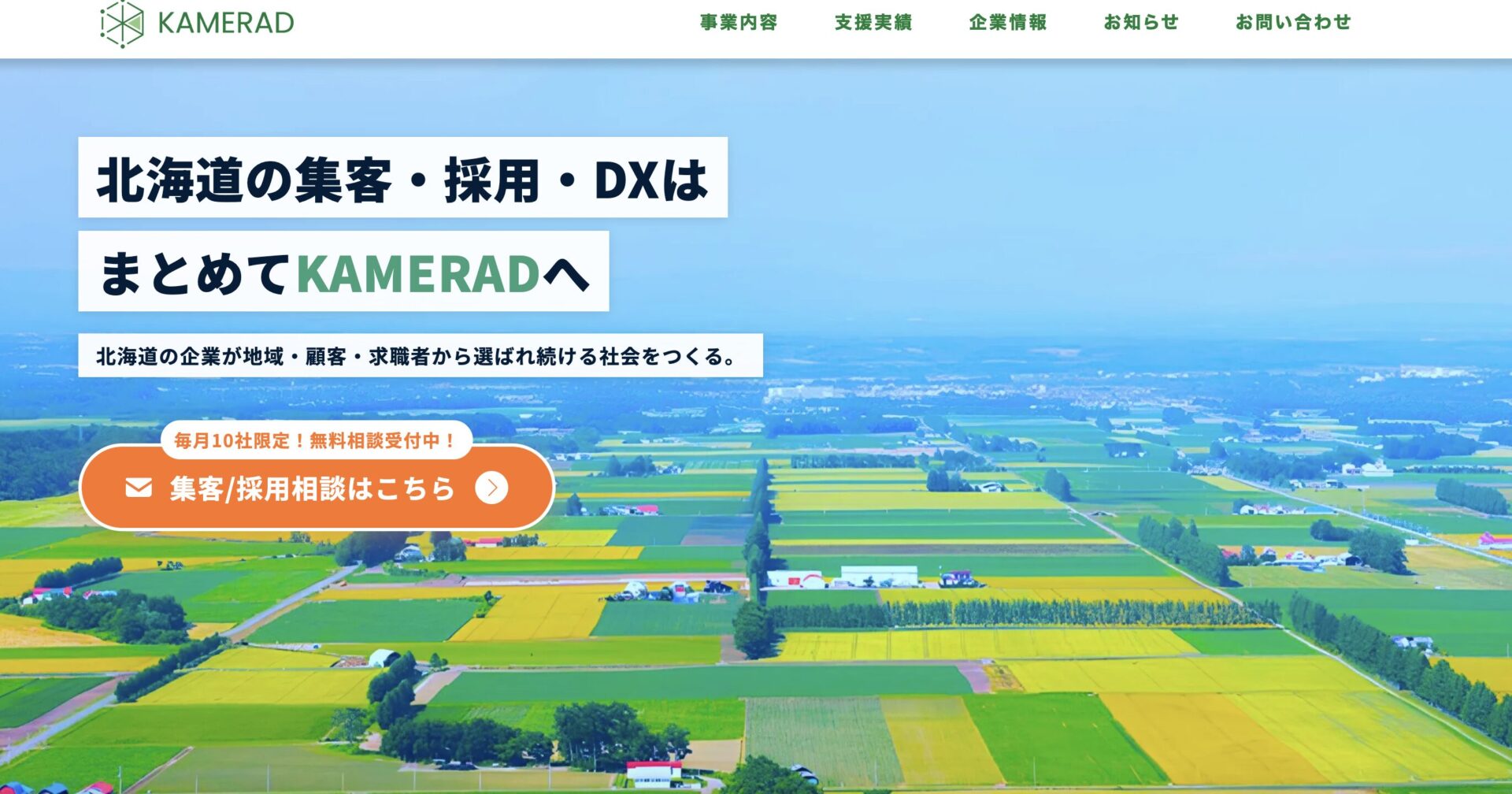 KAMERAD株式会社は、札幌市を拠点とするWebマーケティング会社です。「北海道の人材定着に、マーケティングで挑む」をミッションに掲げ、企業の本質的な魅力を引き出すことに注力しています。